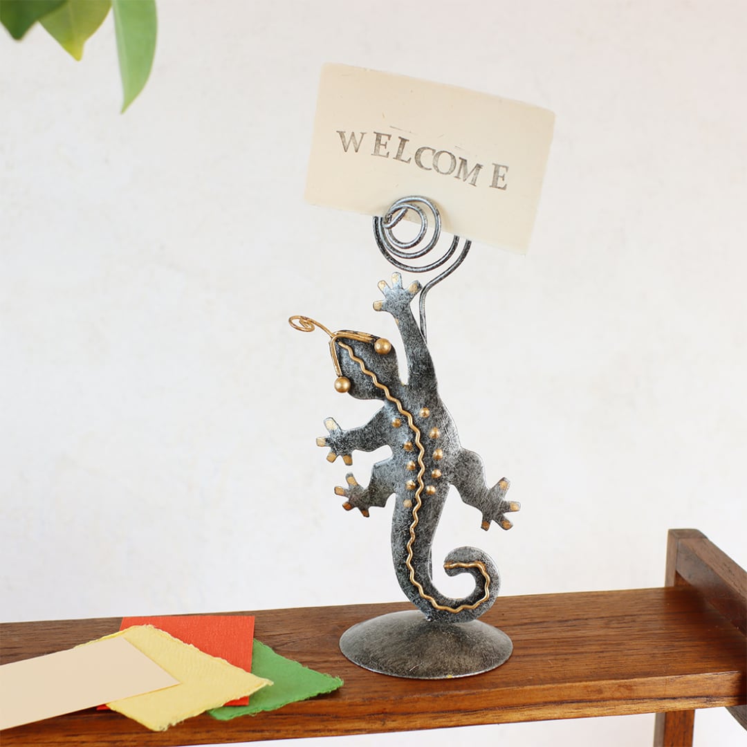 愛嬌たっぷりでかわいいヤモリ(ゲコ)のブリキカードホルダーです。