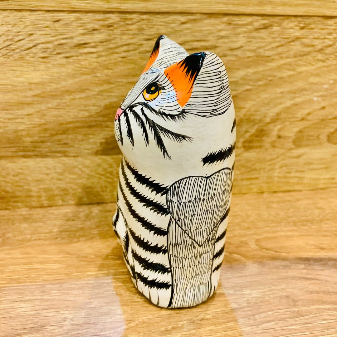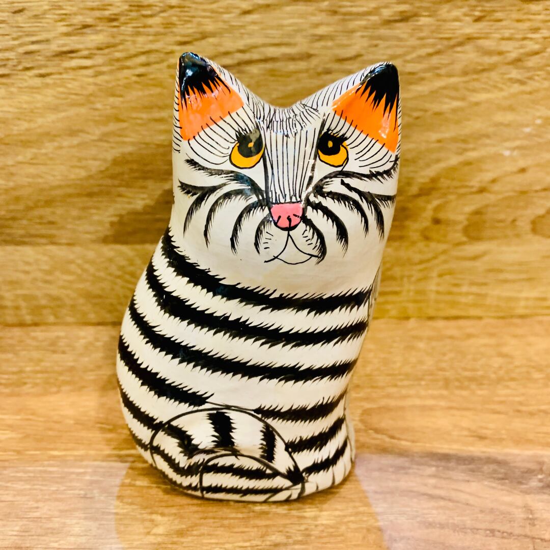 インド ペーパーマッシュ お座りしましまネコ