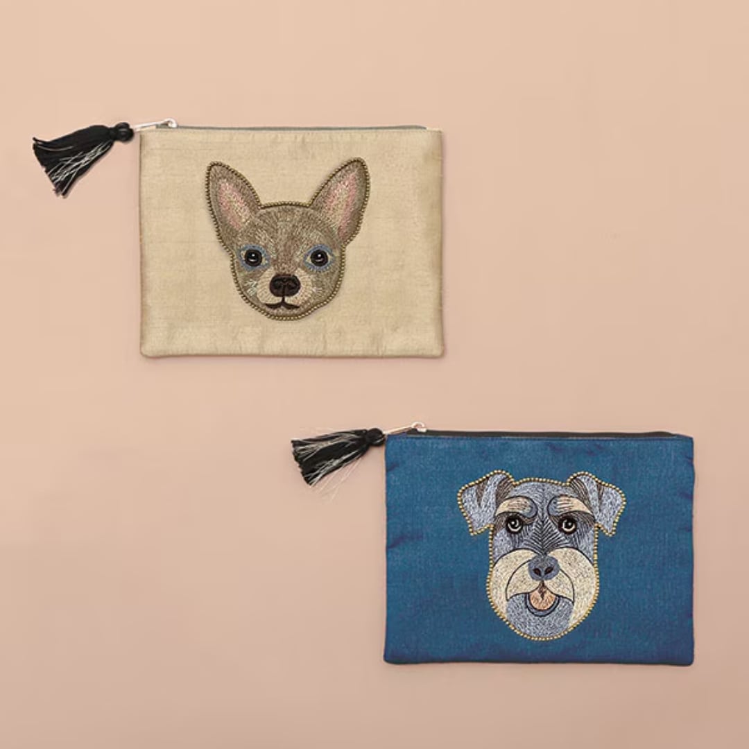 ドッグ刺繍ポーチ