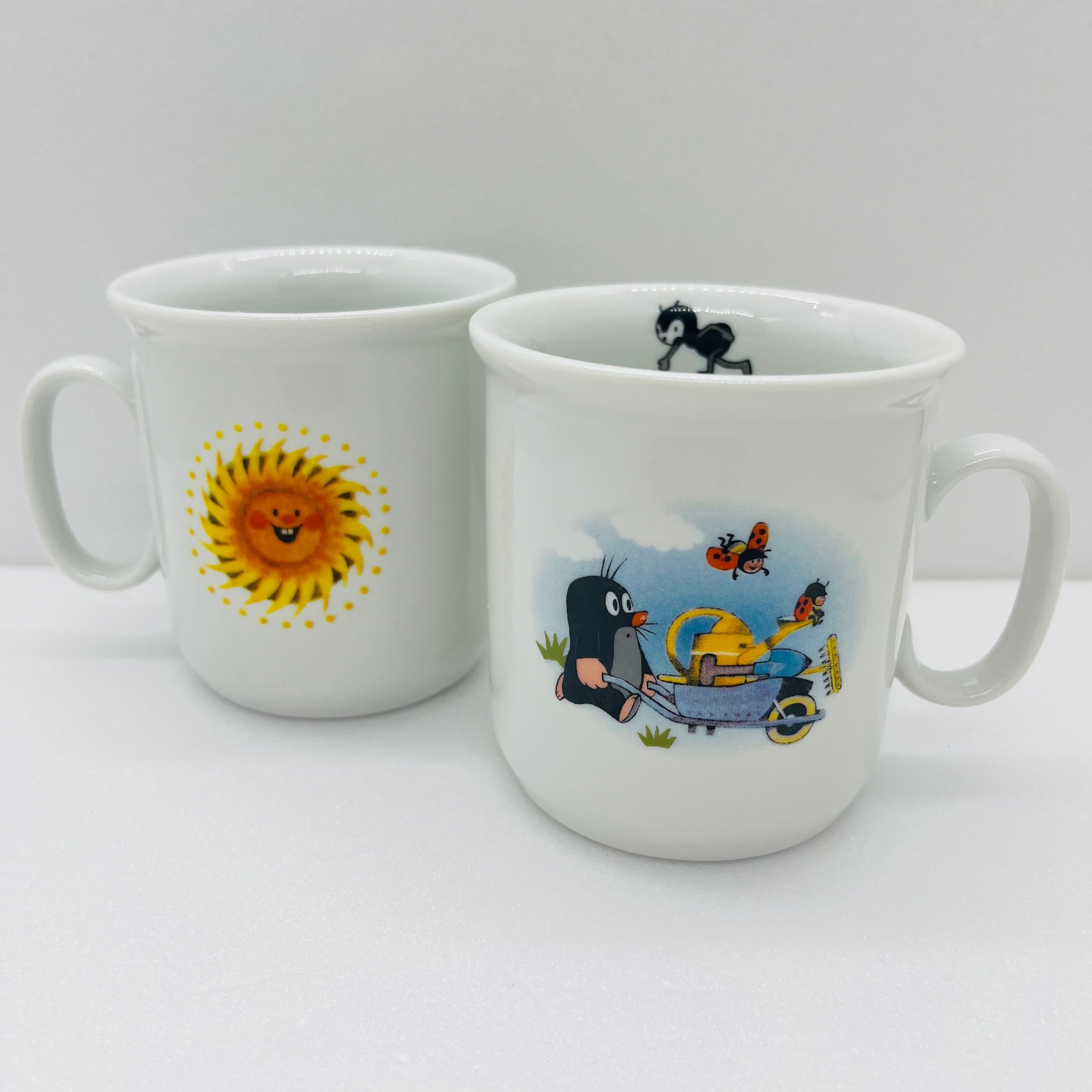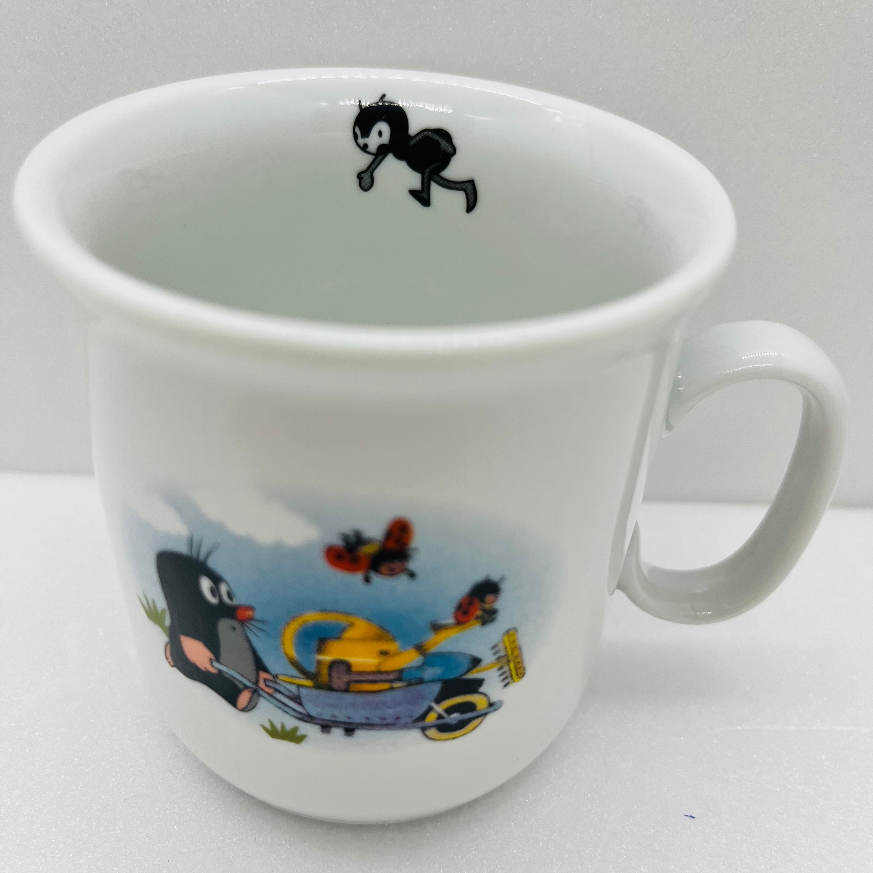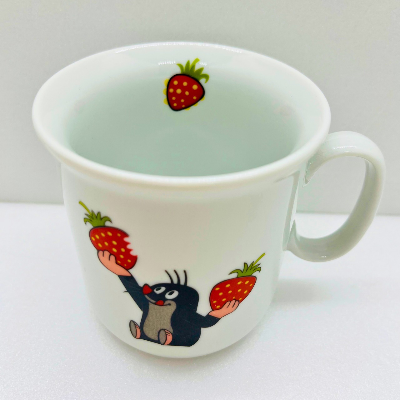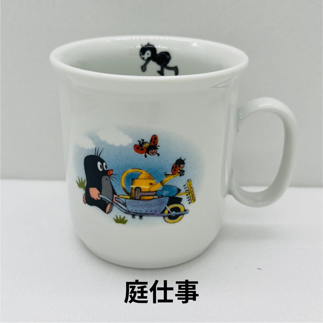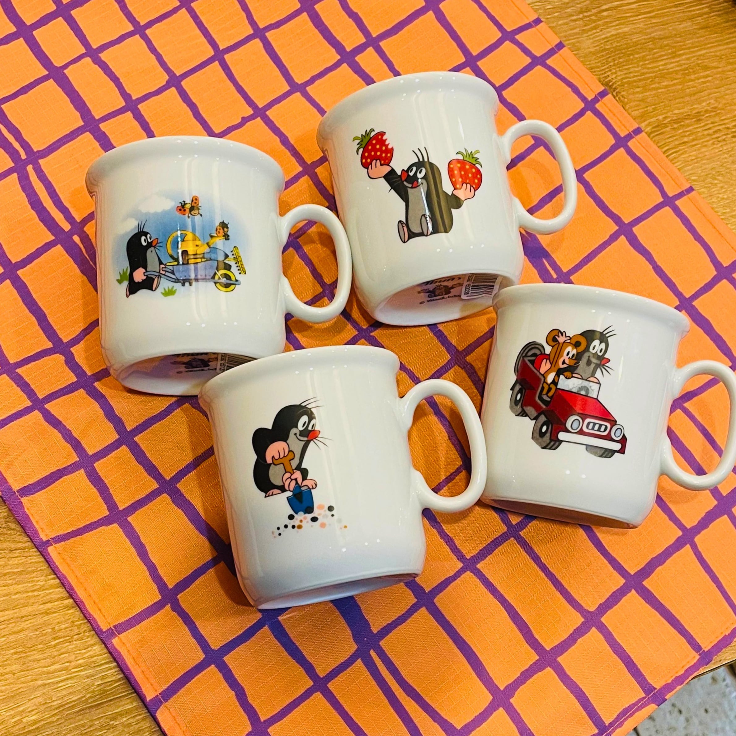 絵本の1ページを切り抜いたようなクルテクのイラストがプリントされた可愛らしいマグカップです。