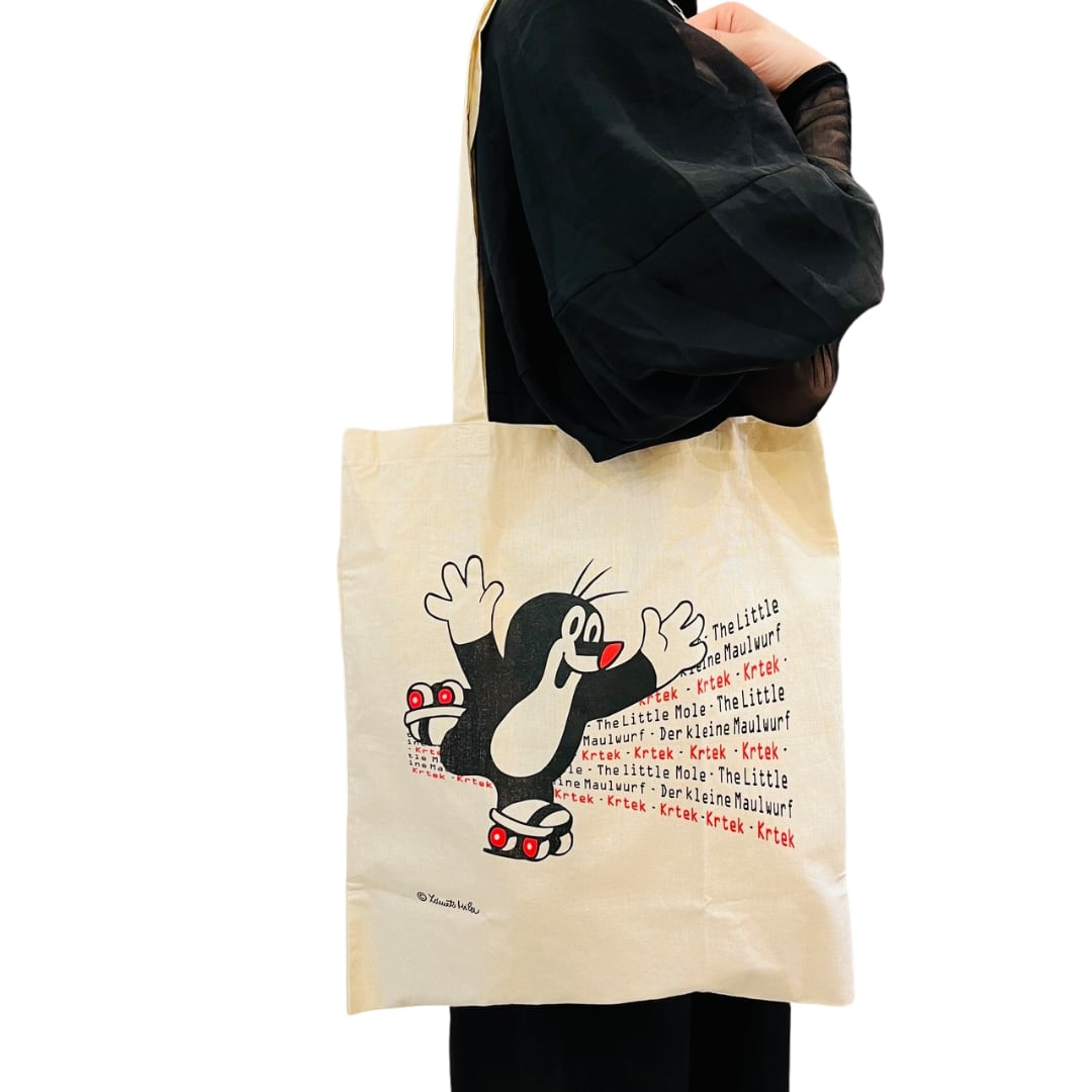 チェコの大人気キャラクターのクルテクがプリントされた布製トートバッグです。
