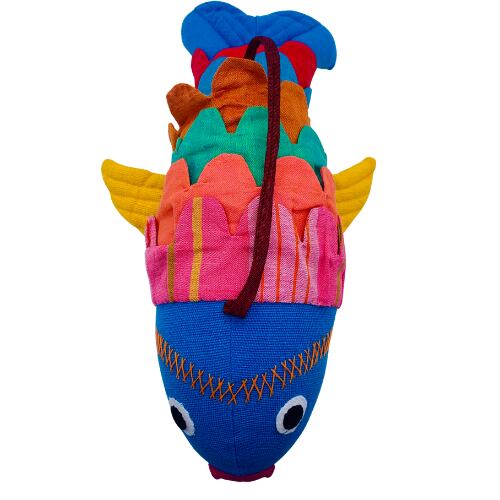 カラフルな鱗が存在感を際立たせるお魚のぬいぐるみです。表情もユニークで愛着が沸きますね♪ 吊り紐があるのでディスプレイしやすいのも魅力。