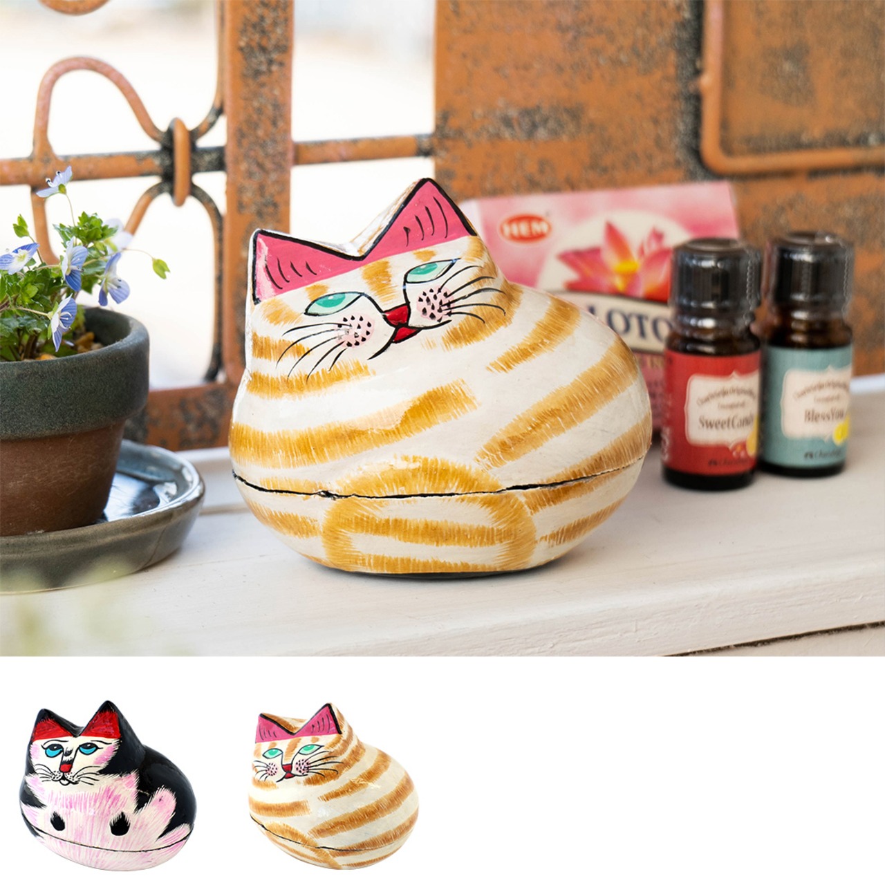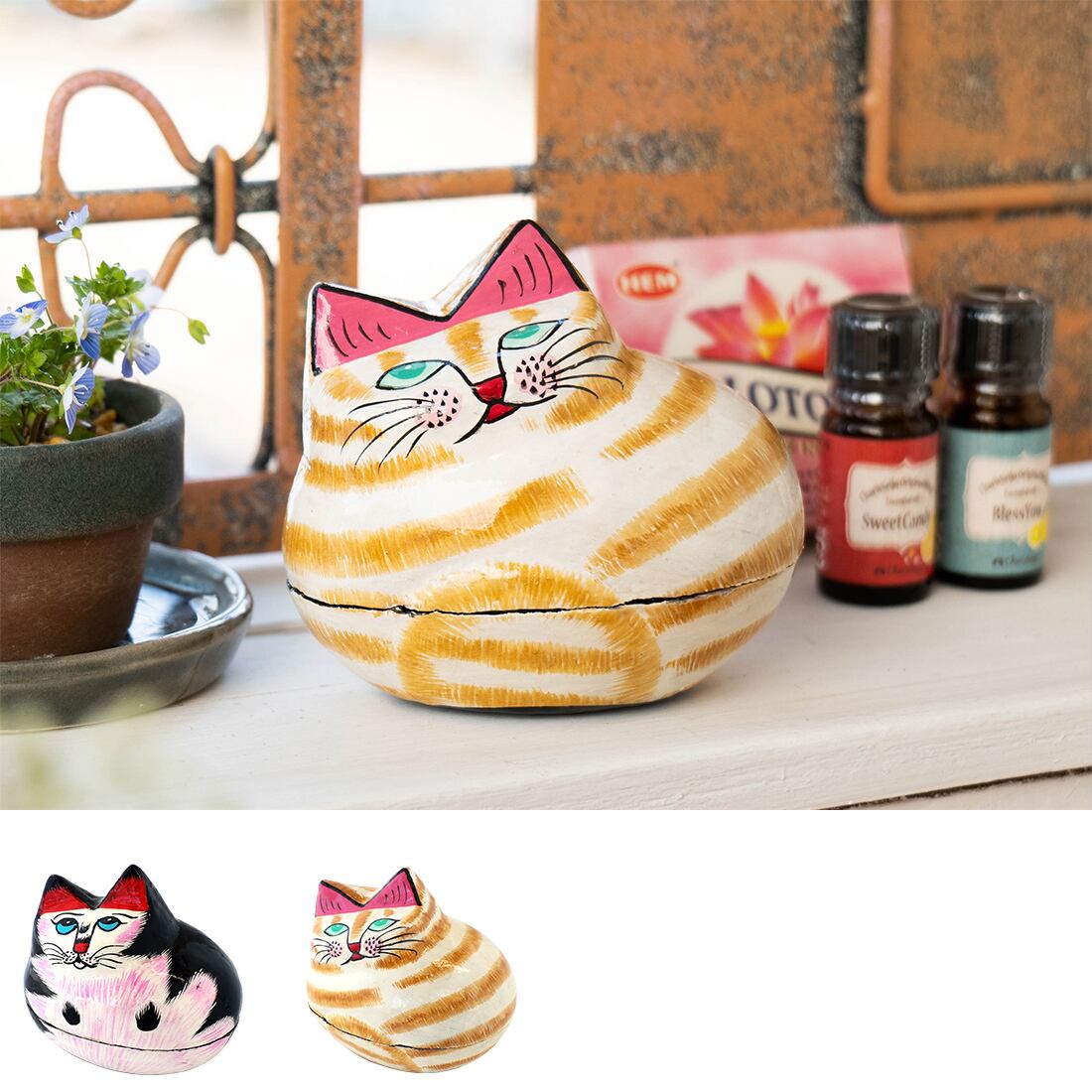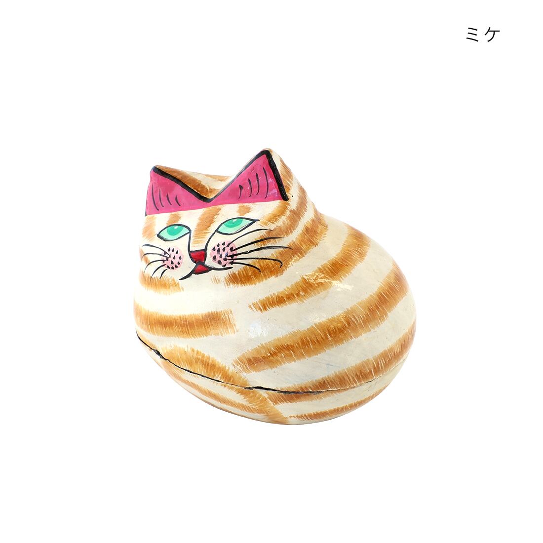インド ペーパーマッシュ 小物入れ お座りネコA