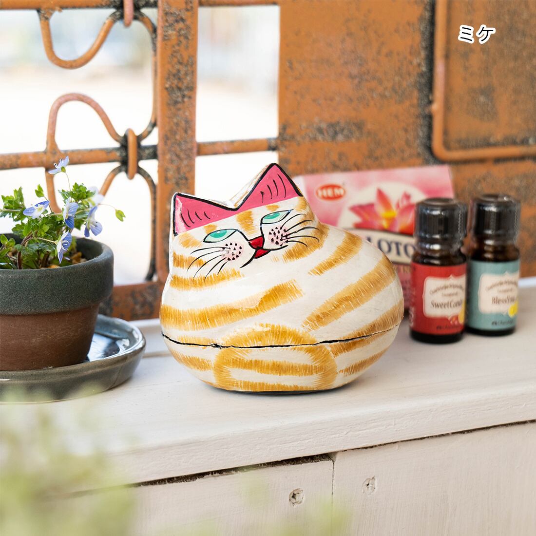 クセになる表情をしたネコのBOXです。そのまま飾るだけではなく、中に小さなアクセサリーや小物などを入れて置くこともできます。ネコ好きの方へのちょっとしたプレゼントにもおススメです◎