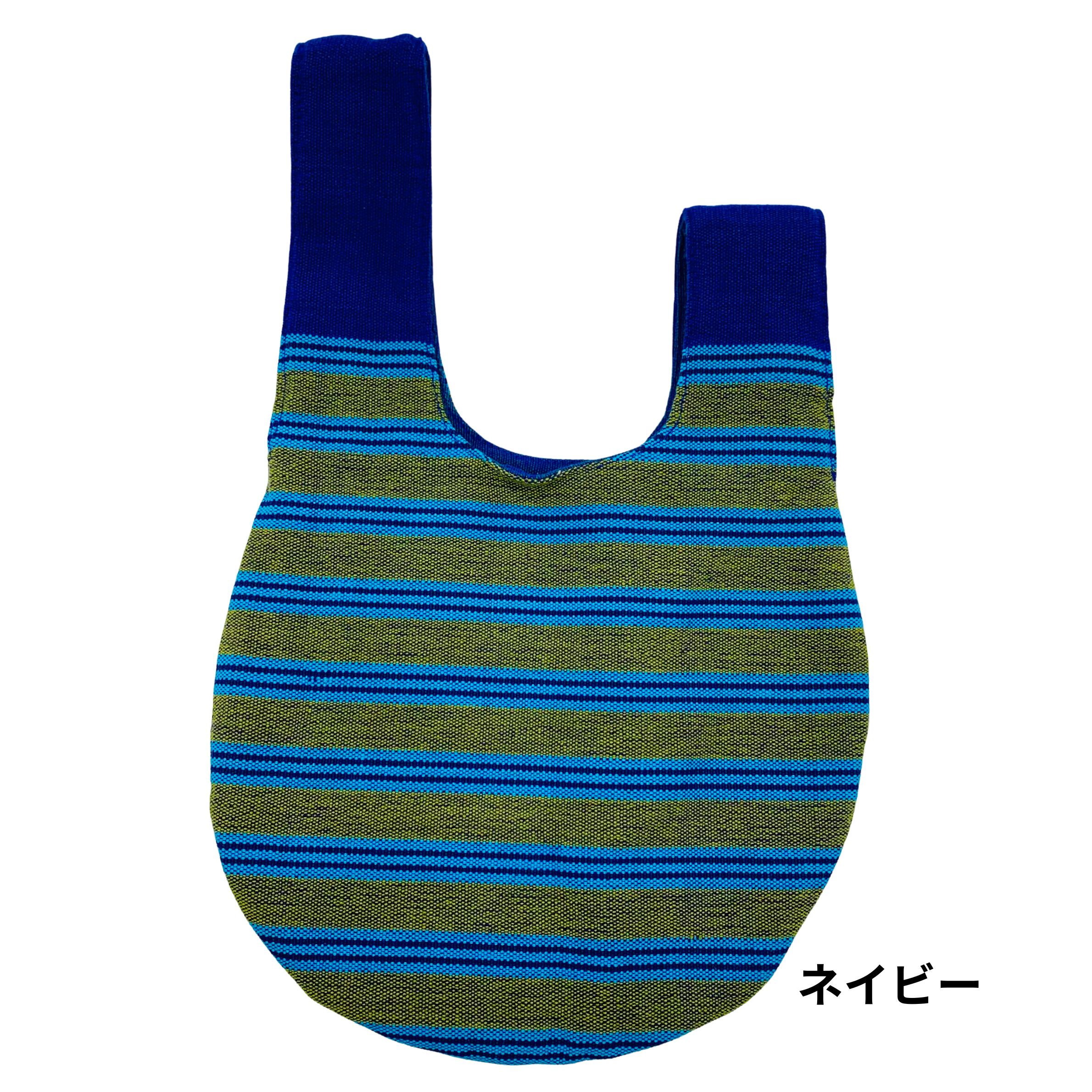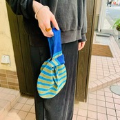 ボーダーと無地のリバーシブルで使えるクロスハンドルバッグ。