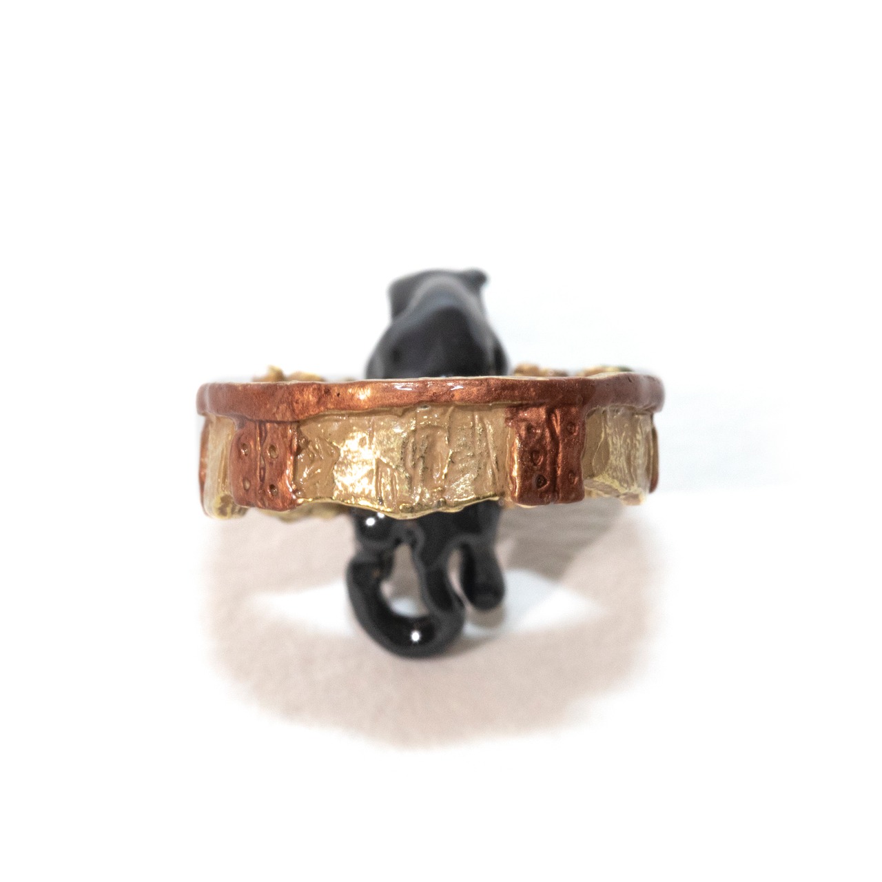 ワイン農場で見つけた樽で遊ぶ姿を表現したリングは、落っこちないよう樽に一生懸命しがみついているクララの姿はもちろん、お花で飾られた樽の細部まで丁寧に作りこまれたデザインです。
