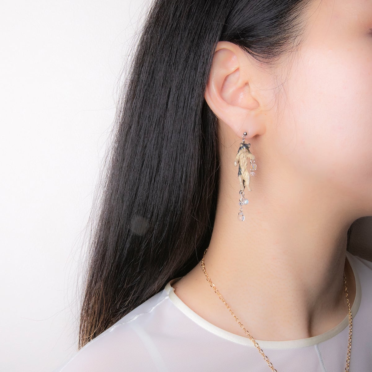 大嫌いなシャンプーを終えたばかりでご機嫌ななめの猫をモチーフにしたピアスです。
