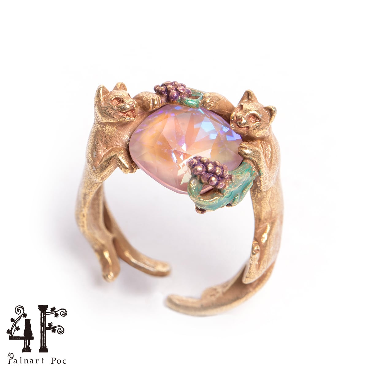 気になる植物にじゃれて遊ぶ猫たちのリング。