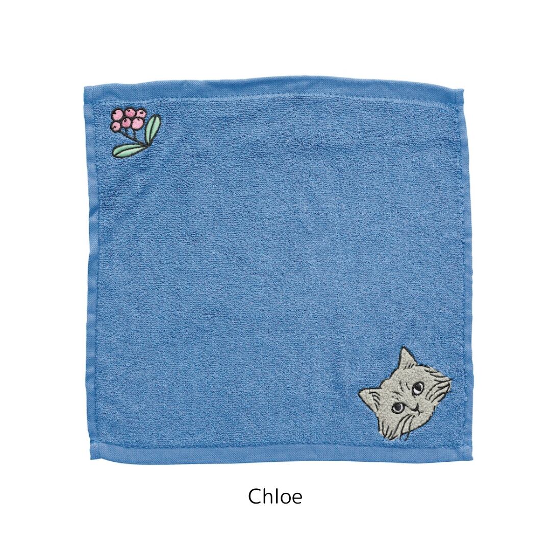 松尾ミユキさんデザインのネコ顔モコモコ刺繍に加え、植物モチーフの刺繍が添えられていて、とても愛らしい仕上がりです。