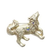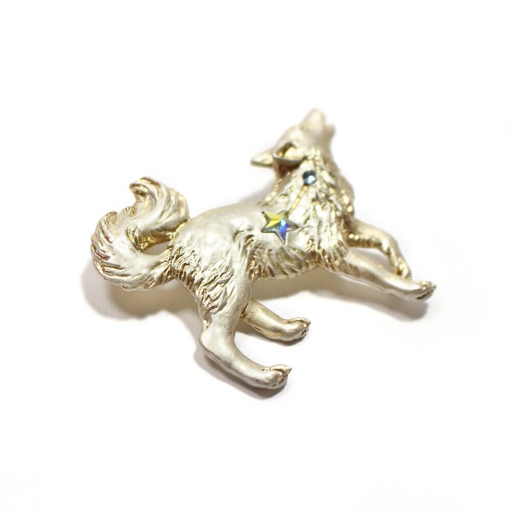 遠吠えをするこいぬ座のブローチ。明るく輝く大きな星はプロキオン、冬の大三角の1等星です。白と黄金色のフサフサとした毛並がとってもリアルで上品な雰囲気となっています。