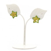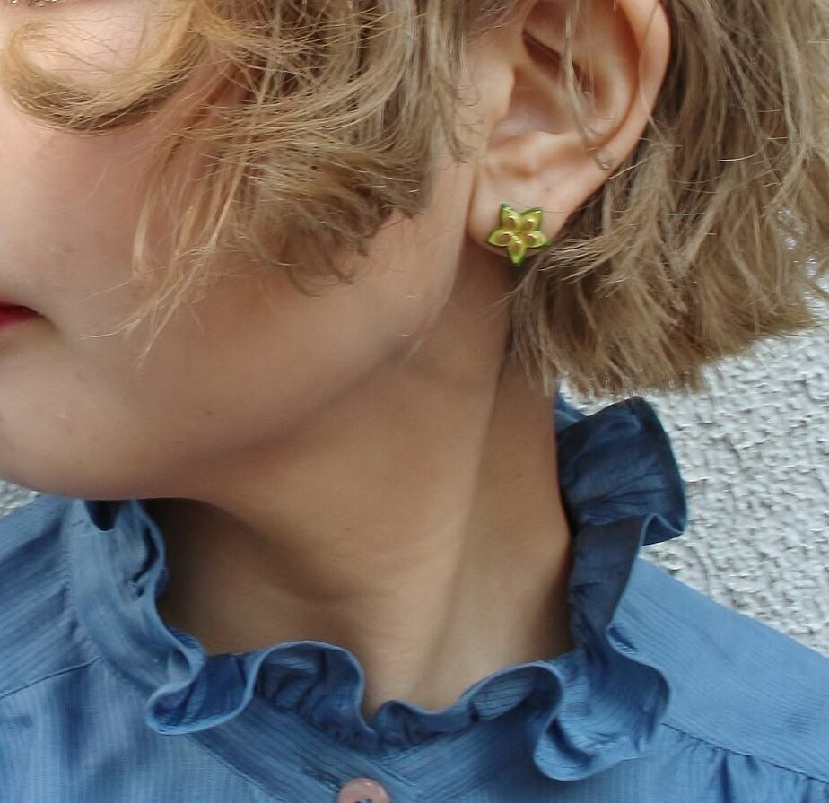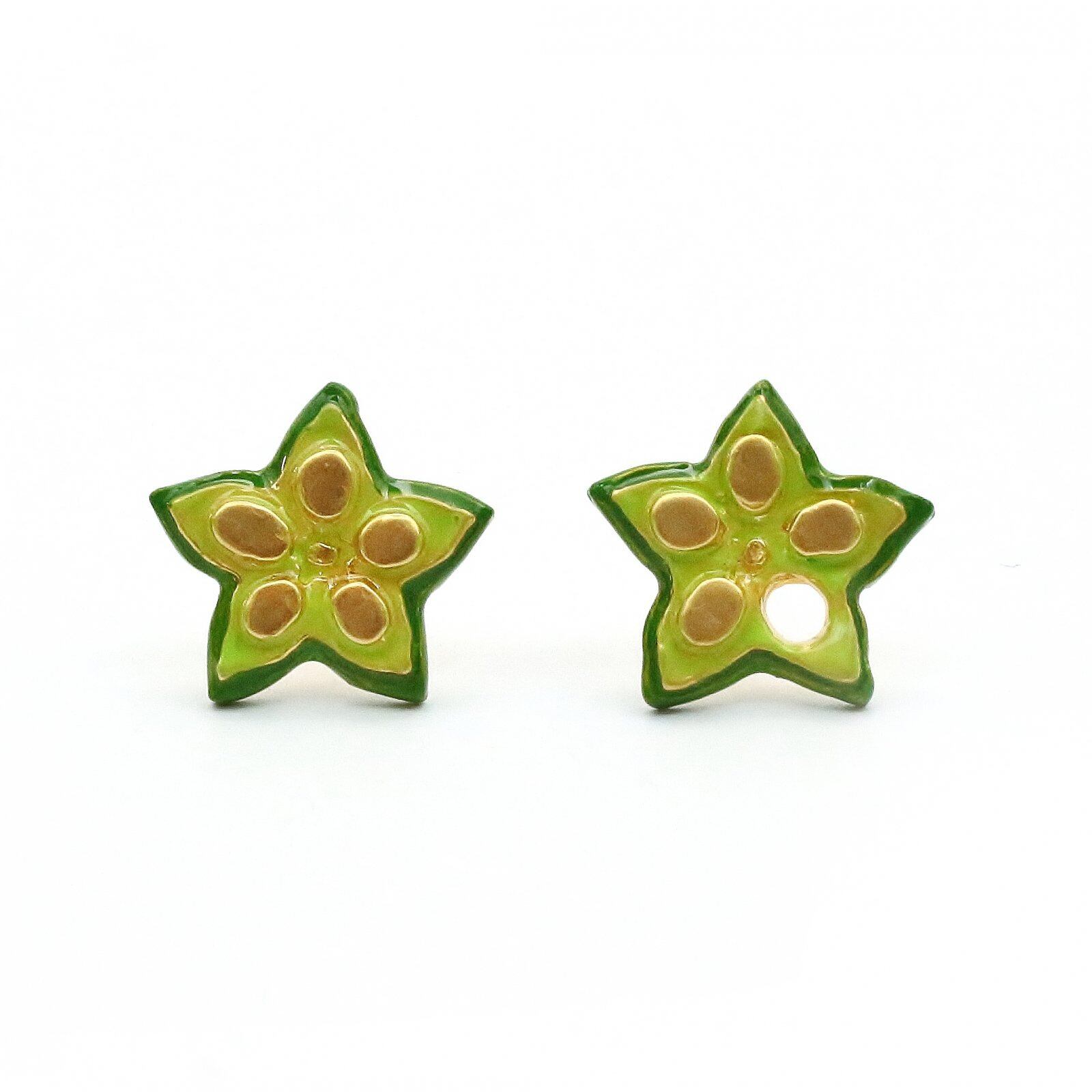 星の形が可愛らしいオクラの輪切りをそのままピアスにしました。ひとつだけ種が抜けているのがポイントです。