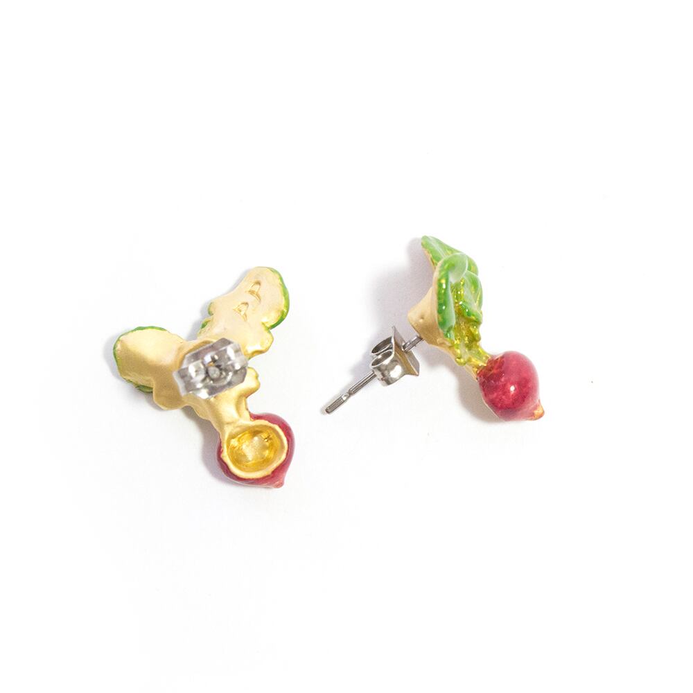 赤くて丸いフォルムが可愛らしい野菜「ラディッシュ」をピアスにしました。