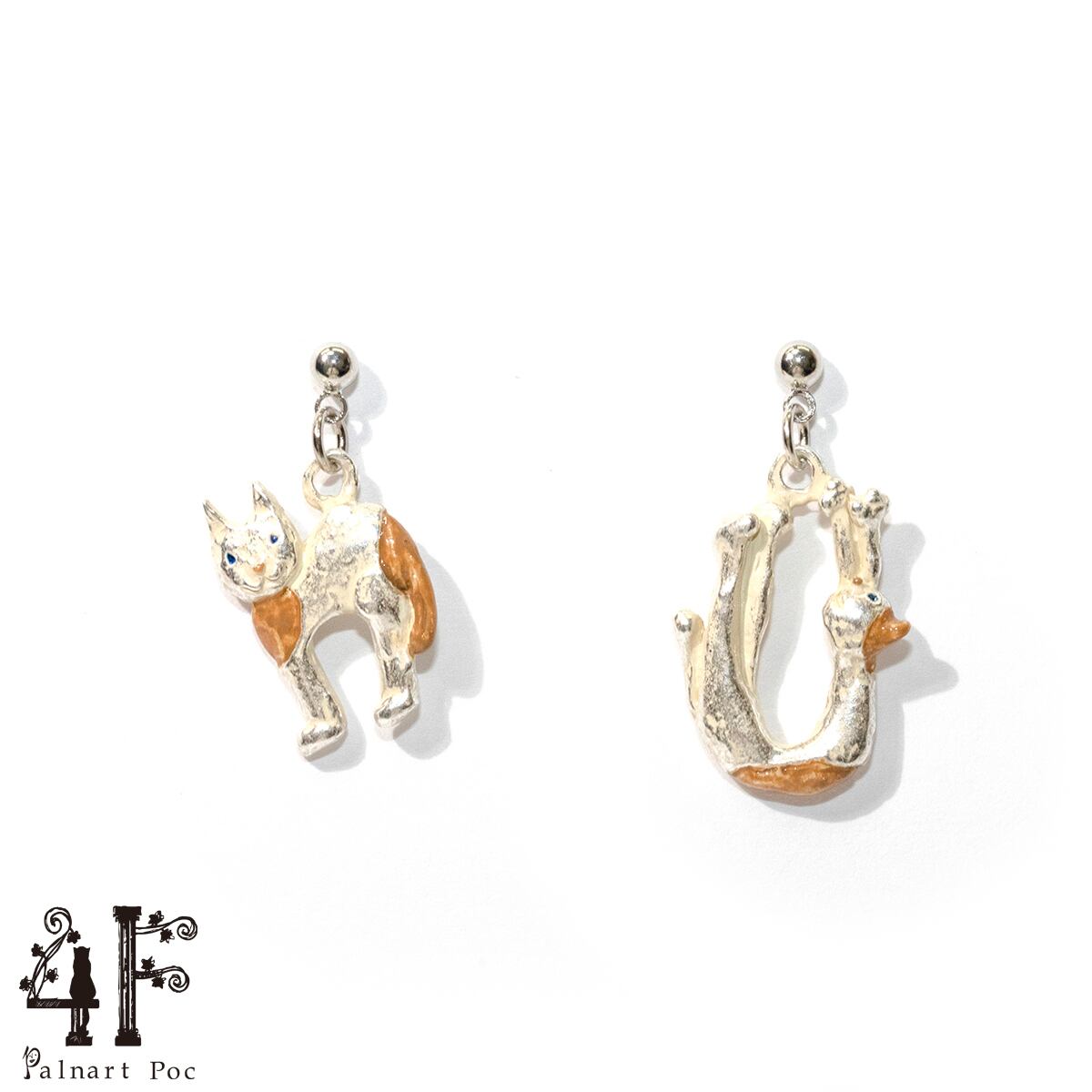 気持ちよさそうに伸びをする猫の仕草、よ~く見てみるとアルファベットのNとUのシルエットになっています。モカ色が柔らかな印象を与えるシルバーのピアスは歩くたびにゆらゆら揺れて可愛いです。