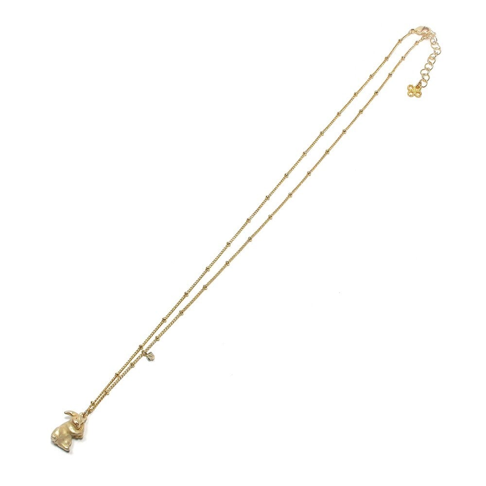 シャンプーをするかのように丁寧に毛づくろいをするロップイヤーのネックレス。自慢の耳を念入りにお手入れしているようです。チェーンには水色のオーロラカラーが爽やかなビーズが一粒あしらわれています。泡がふわっと漂っているかのよう。