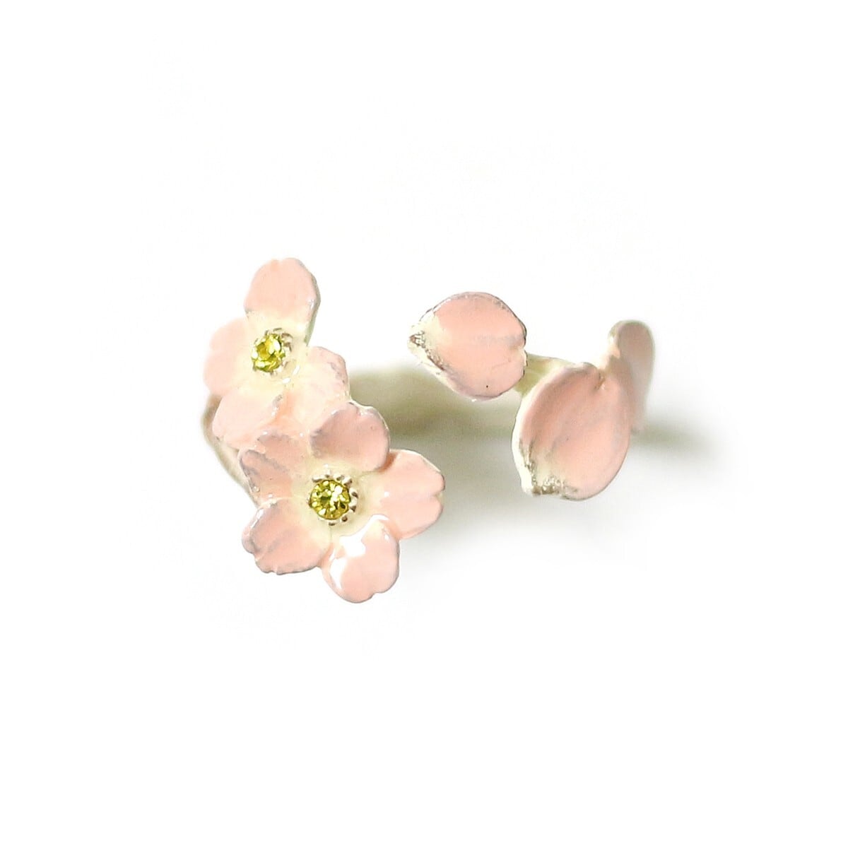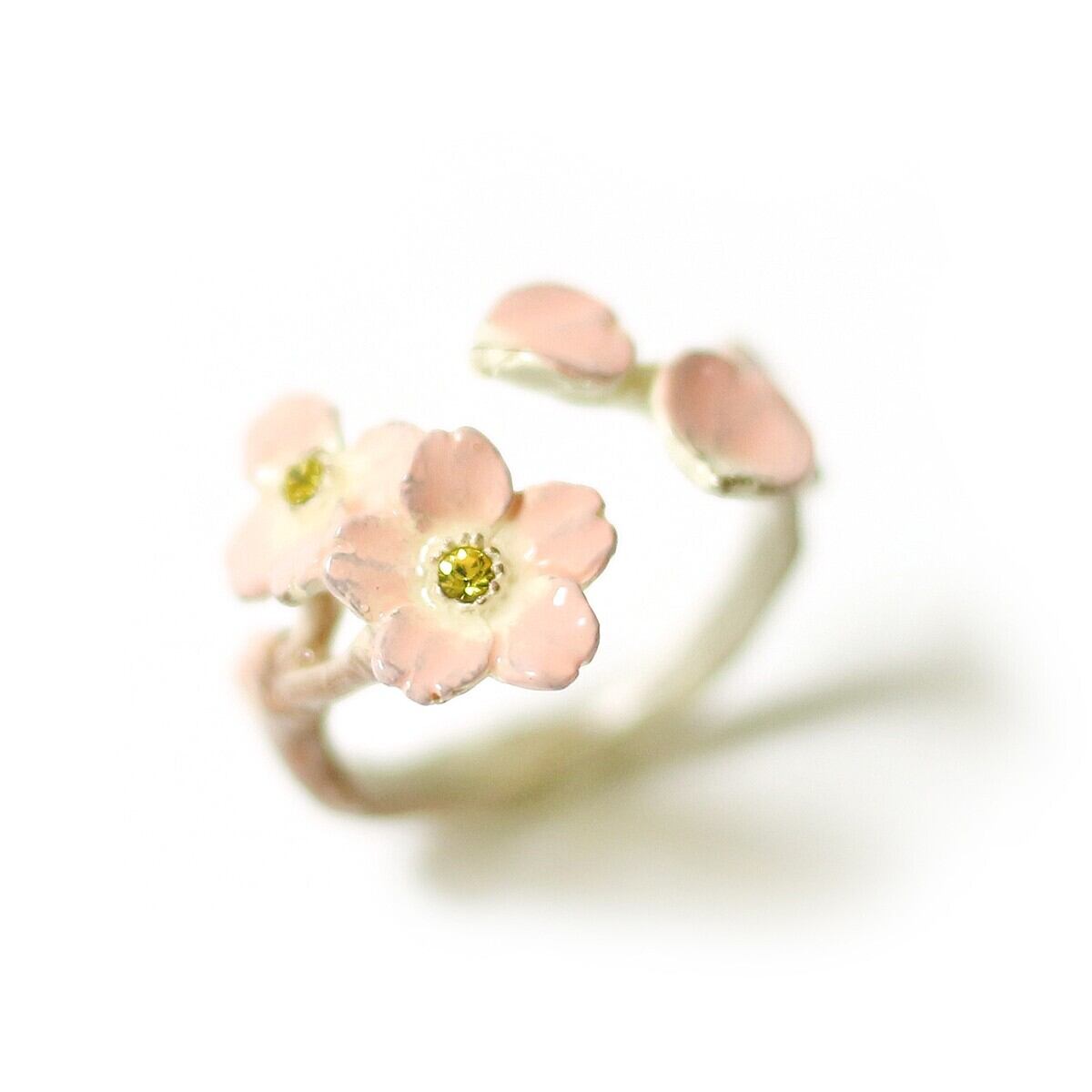 さくらがひらひらと舞う様子がリングになりました。春らしさを感じる優しい色合いのピンクが可愛いです◎サクラの花言葉は「精神美」「優美な女性」「純潔」